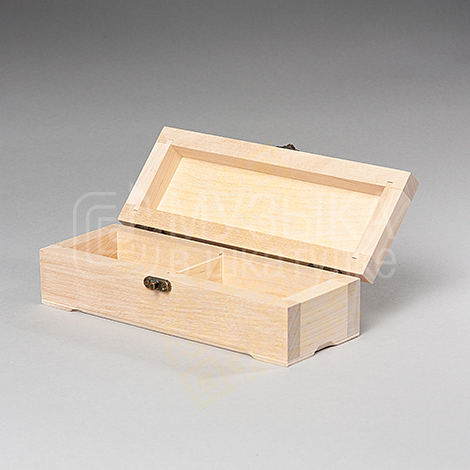 Шкатулка 22х8х6 см, из березы, с замочком и накладными петлями “под бронзу”, разделена перегородкой на 2 ячейки.