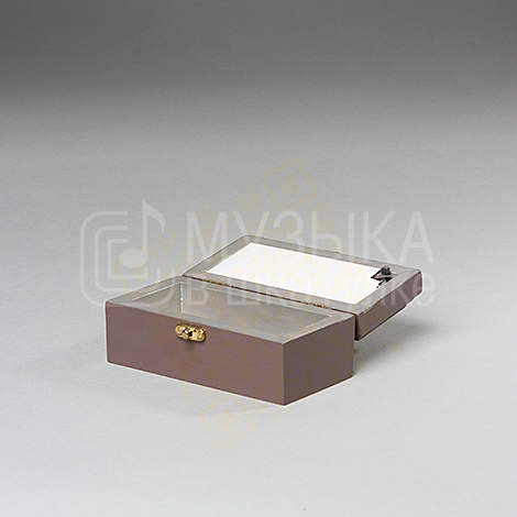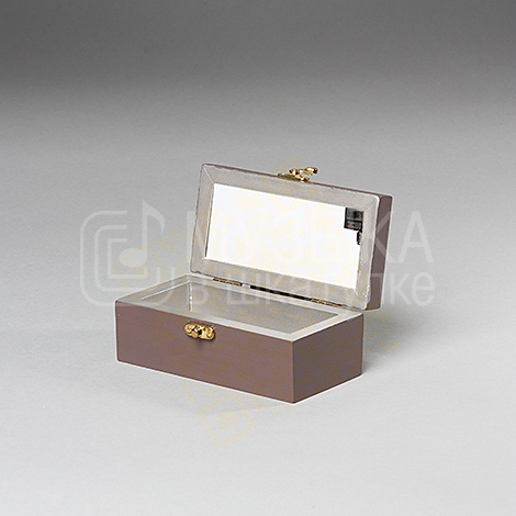 Прямоугольная шкатулка 14х7х7 см из липы, с уже встроенным музыкальным модулем. Крышка фигурно обрамлена, замочек и накладные петли “под золото”. Снаружи покрыта морилкой цвета палисандр и матовым лаком. Внутри – серебряной акриловой краской. Модуль закрыт картонной заглушкой.